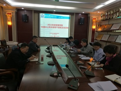根据《中共贵州省纪律检查委员会 中共贵州省委组织部关于认真开好2016年度县以上党和国家机关党员领导干部民主生活会的通知》(黔组通〔2016〕195号)和《关于认真开好2016年度处级以上党员领导干部民主生活会的通知》(贵大两学一做组办发〔2016〕16号)文件要求,管理学院于2017年1月6日15:00在管理学院一楼会议室召开管理学院处级以上党员领导干部民主生活会,常务副校长王红蕾、学院党委书记陶玉顺、院长李烨院长、副院长王婷、副院长宋山梅、副书记张亚军参会。民主生活会由陶玉顺书记主持。