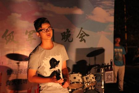 此次晚会由开场乐队带来的别开生面的《只有音乐才是我的毒药》火爆开启。青春激昂的乐曲配之以学生乐队带来的优美旋律,相得益彰,在崇义楼的上空划破了寂静,注入了青春活力。