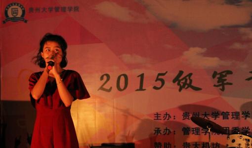 2016年7月14日19:30由管理学院主办,管理学院团委学生会承办的军训晚会在新区崇义楼广场闪亮开启。管理学院团委学生会为15级同学准备了各式各样的表演,借此欢迎15级同学,并为15级同学将近半个月辛苦的军训生活表示慰问。贵州大学学生工作部处(处)副处长钱龙,副处长冉龙彪,副处长于松受邀出席本场晚会,管理学院团委负责人陈芊羽老师也到场观看了晚会。