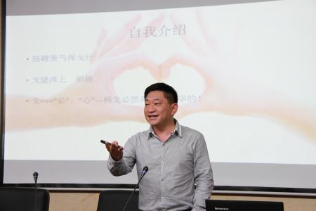 杨戈老师首先介绍了一下自己,以自己的心路历程讲述了自己如在挫折中认识真正的自己,其幽默风趣的语言从一开始是就打动了大家。