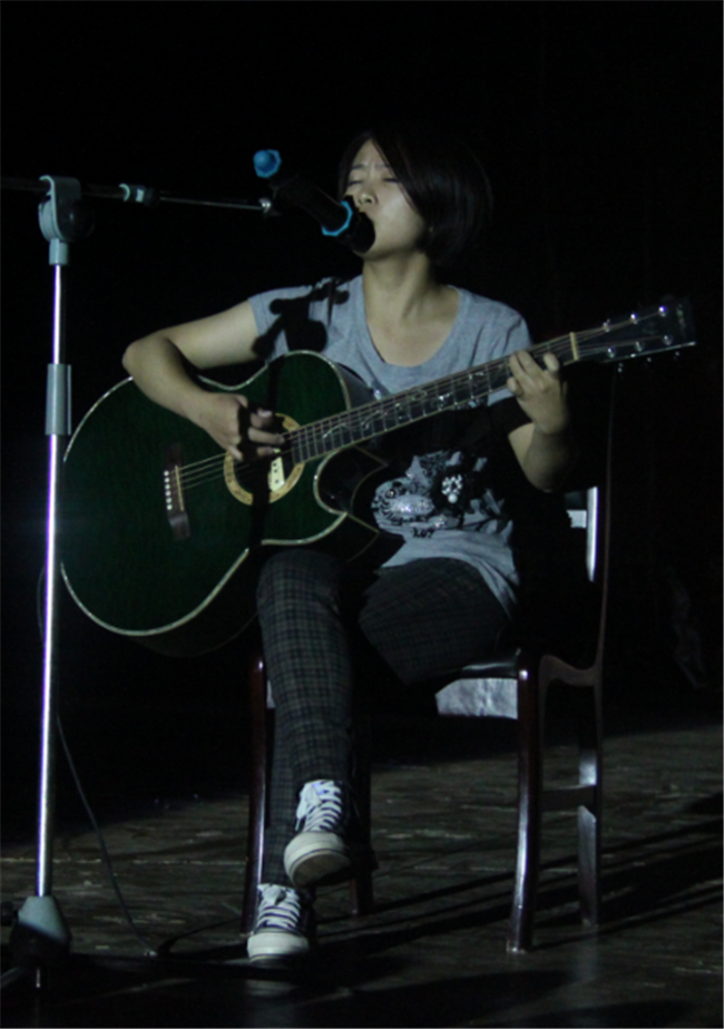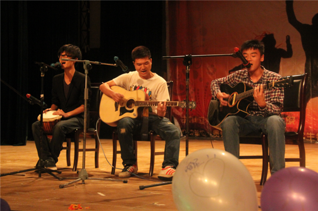 青春需要狂欢,一首吉他弹唱《如果你冷》赢得了在场观众的阵阵掌声和尖叫声,由器乐队演唱的《I’m  yours》瞬间又调动了现场的气氛,紧接着,充满民族风情的独舞《巴略梦》韵味十足,在口技加民族乐器表演中,表达出了一个学弟对大四学姐学长的祝福。