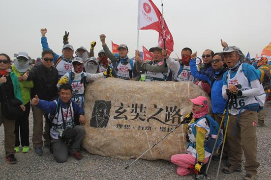 身后,是连续九届参加戈壁挑战赛的兄弟院校的戈友们,我们虽然晚来了,但我们并没有迟到,我们将一起同踏戈壁征途,用脚步丈量心灵的距离,在茫茫戈壁中第一次留下贵大人的身影。
