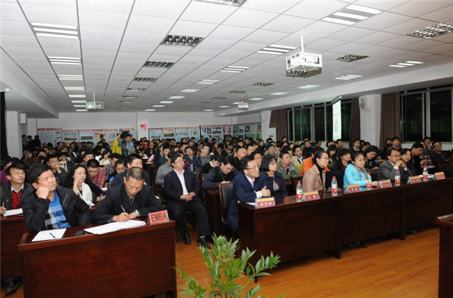 张祥教授随行人员国家信息中心博士后吕云荷、研究生院常务副院长杜滨教授、管理学院院领导、EMBA、MBA及在校研究生共计220余人参加了本次文科讲坛。