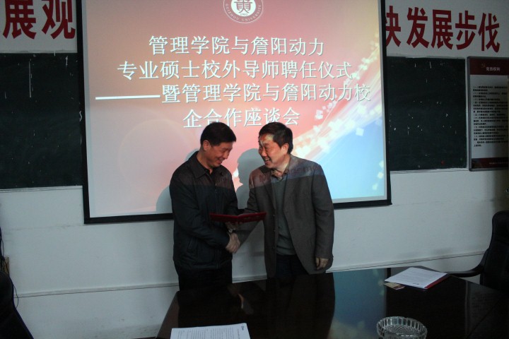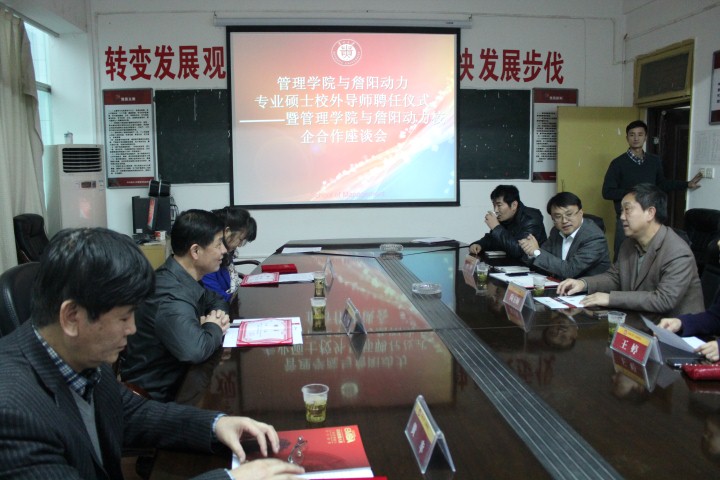 2013年11月20日下午,在我院三楼会议室成功举行了“管理学院与詹阳动力专业硕士校外导师聘任仪式暨管理学院与詹阳动力校企合作座谈会”。