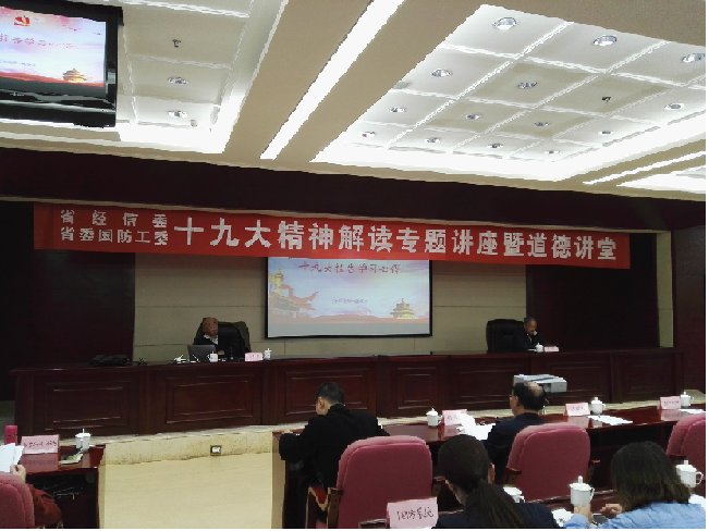 11月14日,由贵州省经信委主办,乐动官方网站、贵州大学EDP教育中心承办的“十九大精神解读专题讲座暨道德讲堂”在省政府七号楼2号会议室顺利召开。贵州省经济和信息化委员会及直属单位领导干部、各市州经信部门负责人、国防系统企业人员等200余人参加了本次讲座。