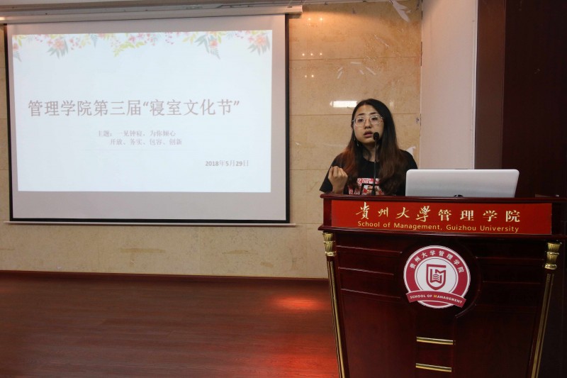 2018529日晚上七点,我院于管院三楼报告厅举办了主题为“一见钟寝,为你倾心”的管理学院第三届寝室文化节评选活动。我院团委负责人陈芊羽老师、团委学生会主席团成员出席并担任本次评委,各班代表同学担任大众评委,本次活动由王馨悦同学主持。