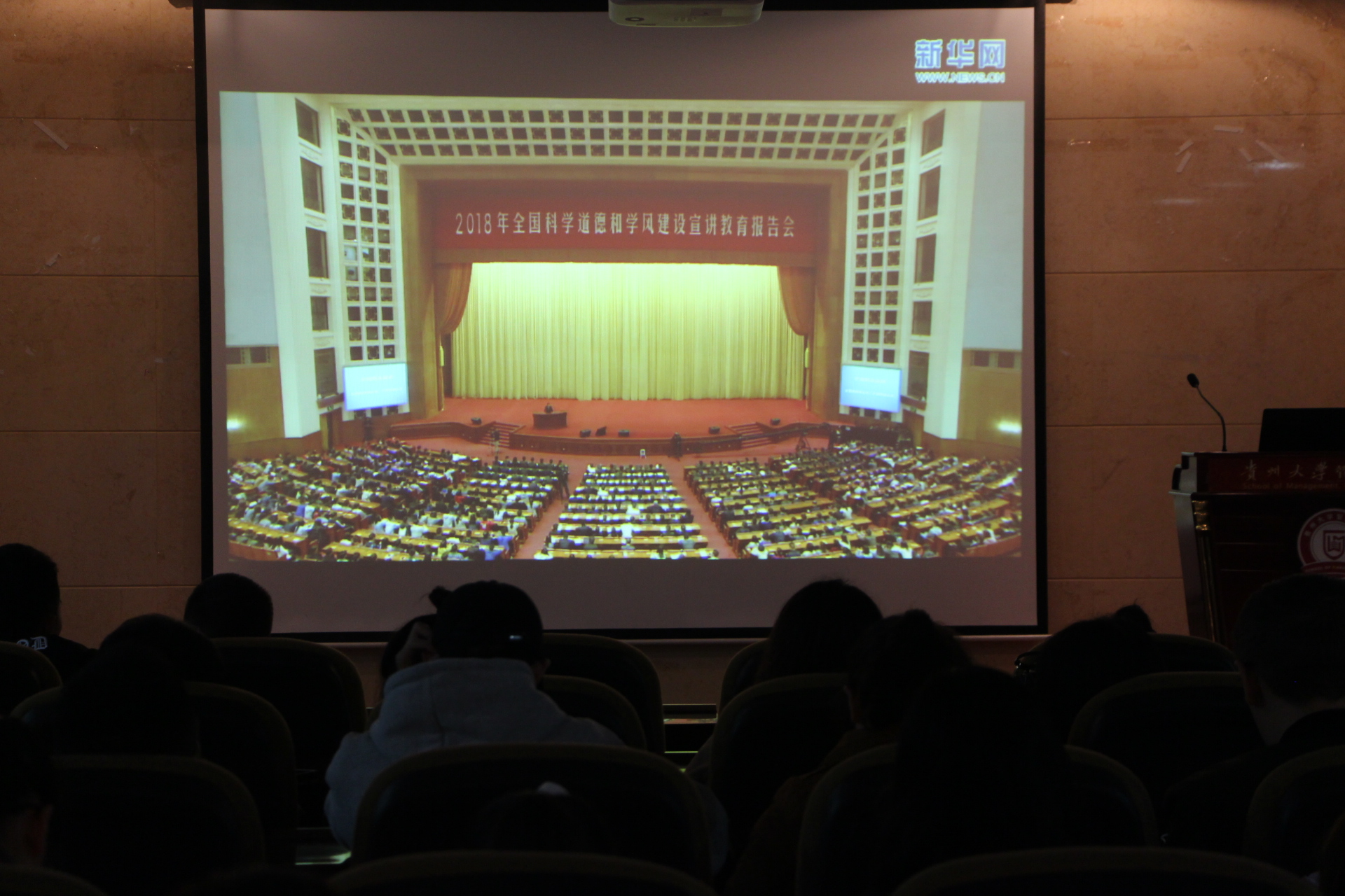 为深入贯彻学习党的十九大精神、“科技三会”精神和习近平总书记关于科学道德学风建设的重要指示精神。10月15日下午15:00,管理学院在管院三楼报告厅组织师生集中观看2018全国科学道德和学风建设宣讲教育报告会,参加本次报告会观看活动的有学院教师代表、研究生党支部及各班学生代表、本科生党支部和本科生代表。