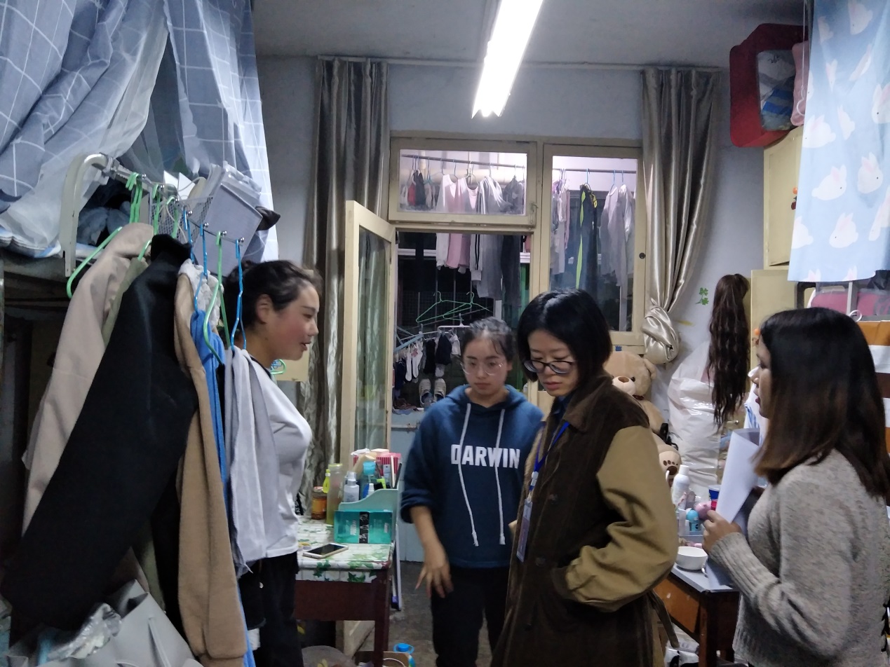在检查寝室过程中,张书记和老师们亲切的与同学们进行沟通交流,对寝室用电情况、毕业生参加招聘会情况以及同学们的学习情况都进行了深层次沟通,对同学们提出的问题都进行收集和集中解决。老师们的对同学们关心和关怀,得到了同学们的认可和好评。最后,老师还温馨提醒同学们杜绝使用违规电器,保证用电安全。