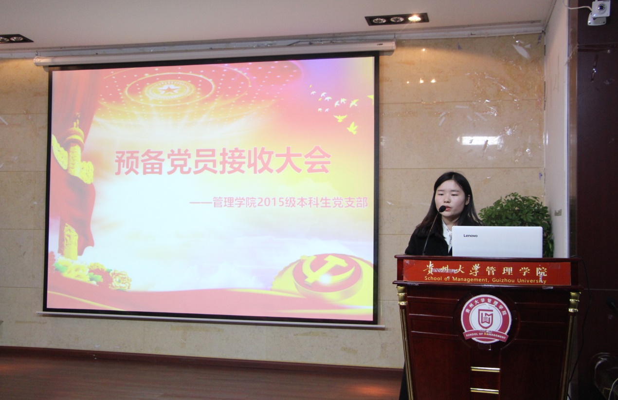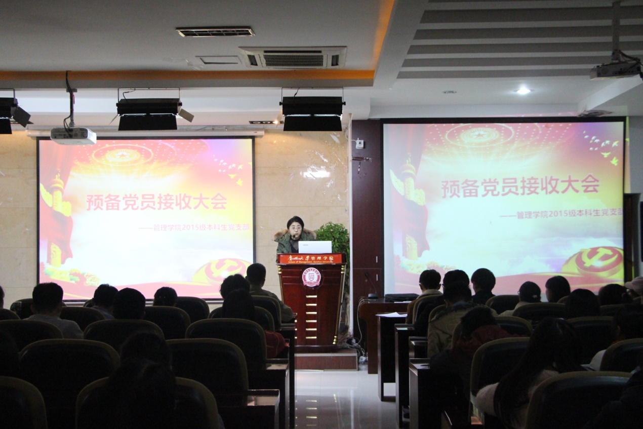2018年11月28日晚7点,由乐动官方网站本科生党支部召开的讨论接收预备党员及预备党员转正会议,在管理学院三楼报告厅召开。管理学院2015级党支部书记陈芊羽老师出席此次大会、管理学院2015年级正式党员、预备党员及2016级发展对象参加本次大会。本次大会由党支部龙云青同志主持。