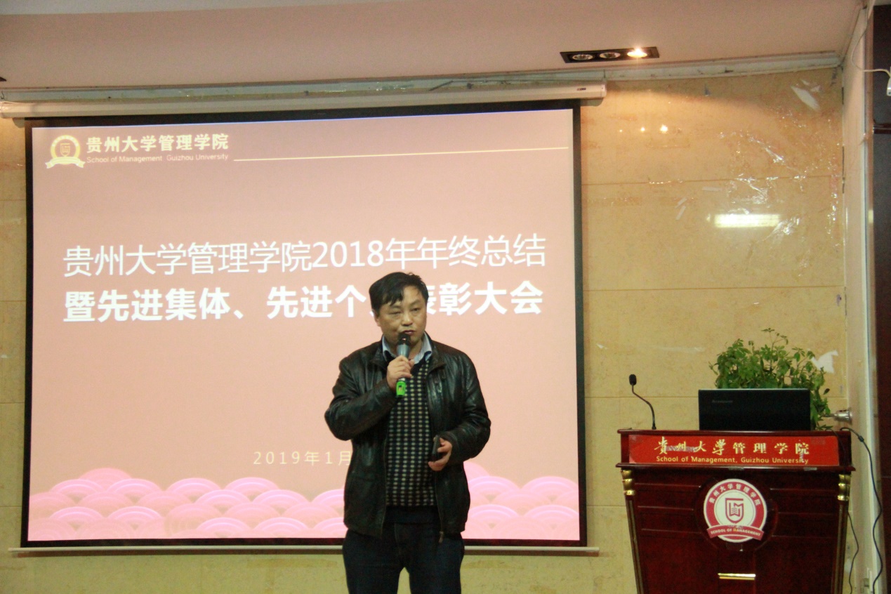 1月11日中午12点50分,乐动官方网站2018年年终总结暨先进集体、先进个人表彰大会于管院三楼报告厅隆重举行。贵州大学哲学社会科学研究院院长洪名勇教授;财务处王斌处长;资产管理处周昌洪副处长;法学院党委副书记、原管理学院副处级组织员洪影秋副教授;对外合作处副处长周乐欣副教授;校督导团李景勃老师以及管理学院近五年退休的各位老师出席本次表彰大会的嘉宾,乐动官方网站院长李烨教授;学院副院长王婷教授、周莉莉教授、宋山梅教授以及学院党委副书记张亚军老师出席本次表彰大会,管理学院全体老师参加此次表彰大会,大会由张亚军副书记主持展开。
