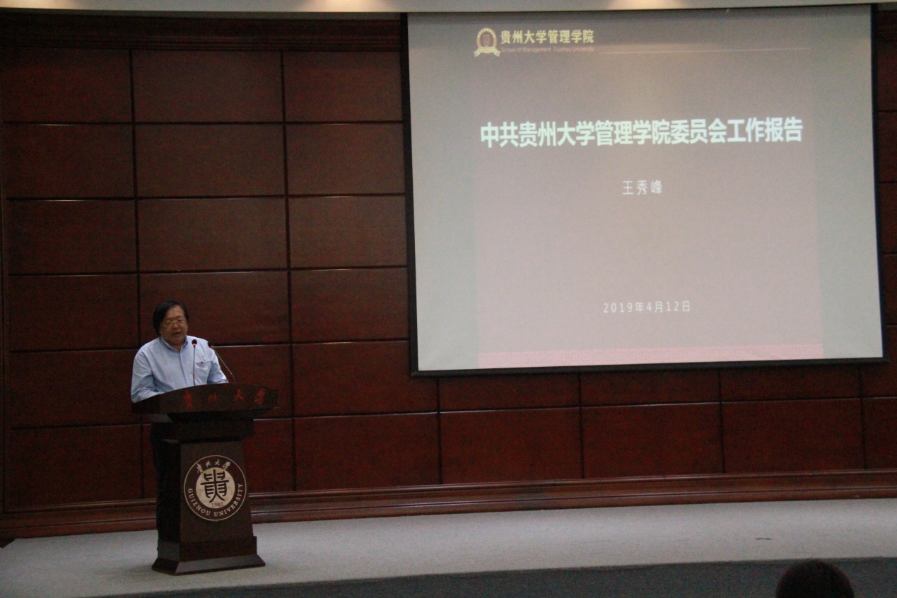 大会在庄严的国歌声中拉开帷幕,学院党委书记王秀峰同志以“凝心聚力谋发展,砥砺前行谱新章”为主题向全体党员作中国共产党乐动官方网站委员会工作报告。王书记对管理学院过去五年的工作进行了全面系统的总结,从学科建设、科研成果、人才培养、人才引进、青年教师培养和国际化交流与合作等方面凝练了学院近五年学院工作亮点,同时从把握办学方向,发挥党组织的政治核心作用;突出立德树人,加强和改进思想政治工作;加强组织建设,切实推进学院党建工作重心下移;加强作风建设,努力营造风清气正良好氛围;加强文化引领,大力弘扬主旋律、凝聚正能量;加强引导服务,推进学院各项工作全面发展等方面安排部署学院今后五年的工作任务。
