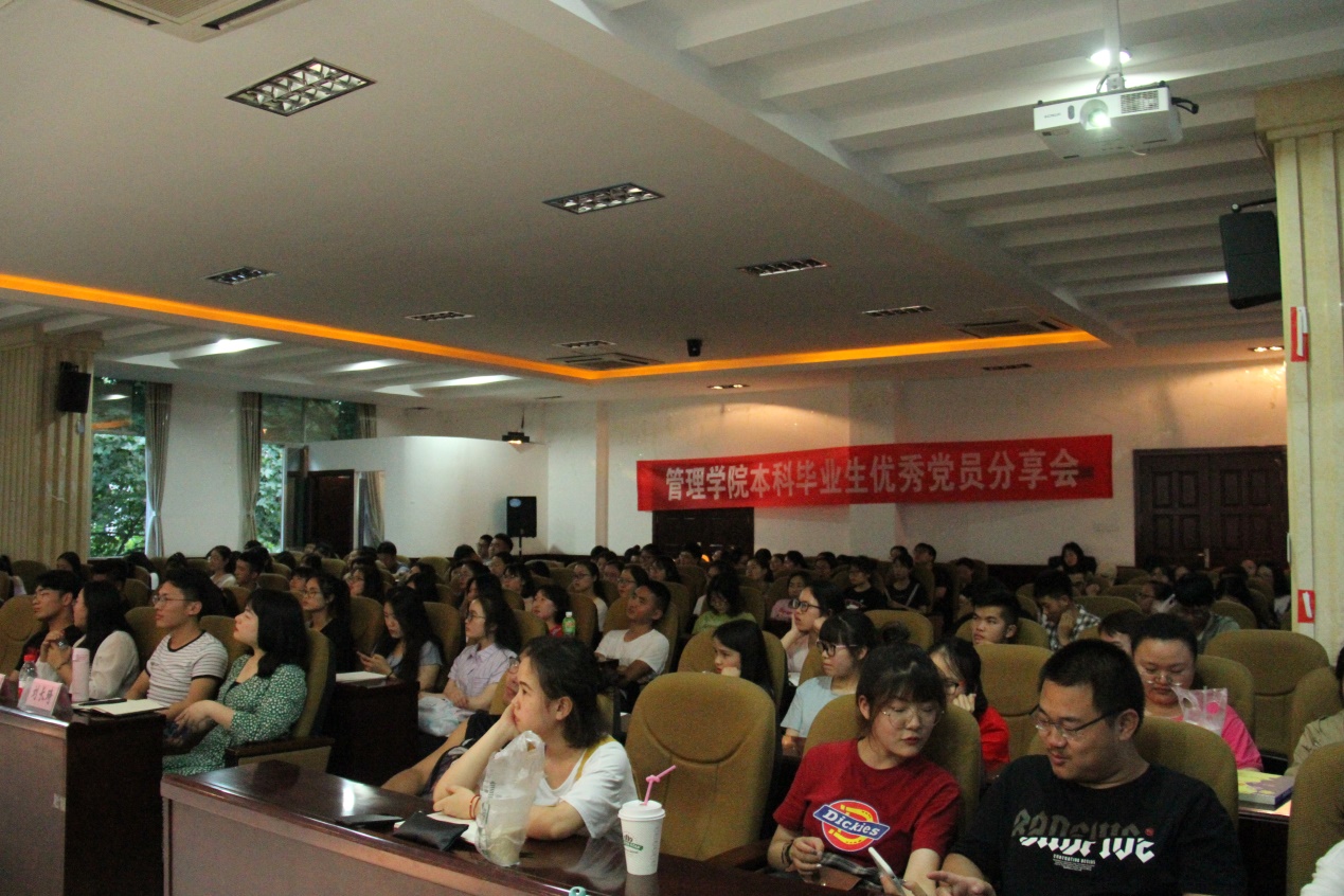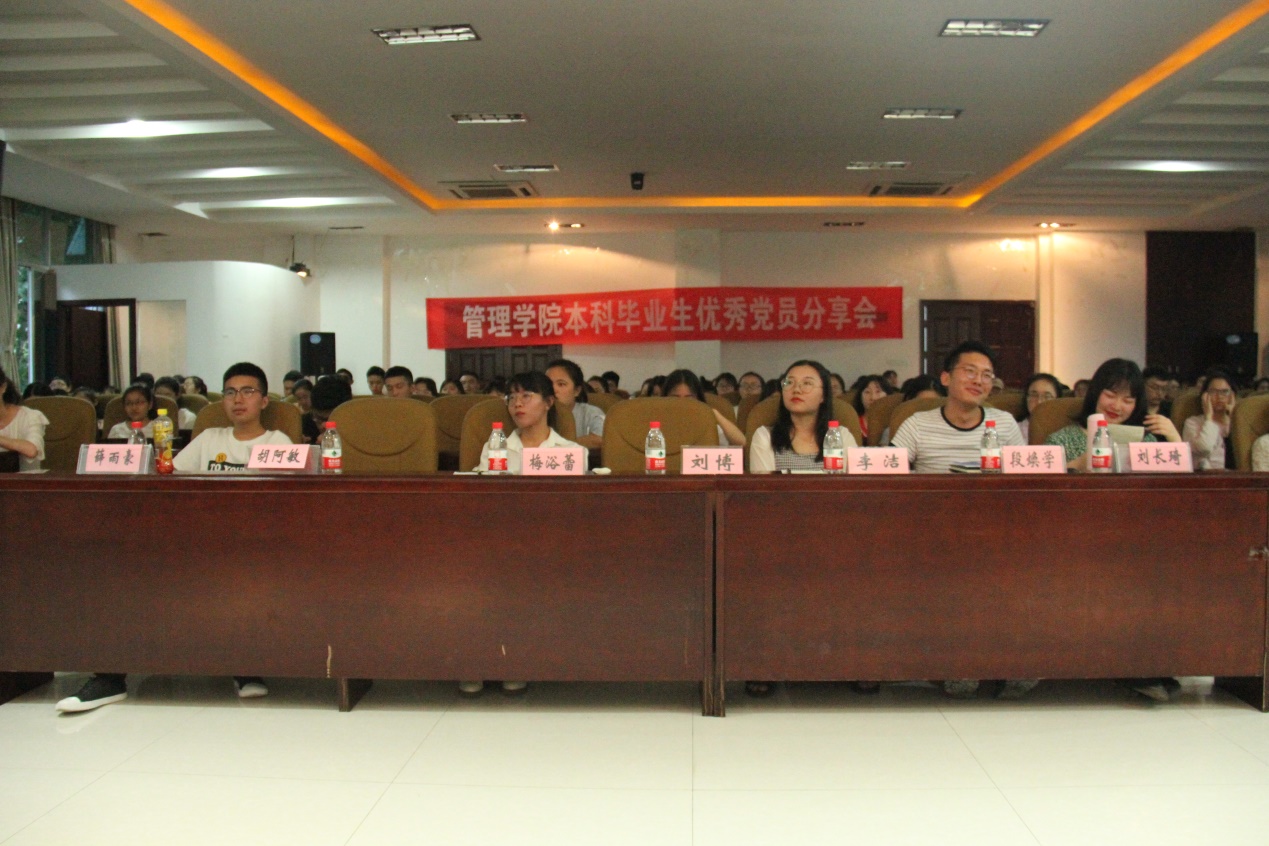 为了加强我院学风建设,帮助同学们坚定自己的目标和理想,让优秀的学长学姐的宝贵经验造福更多的学子,让同学们汲取更多关于入党、考研、保研、就业的经验,解除他们的困惑,从而使他们可以更好地为自己的将来准备,提前做好学习和就业规划。6月14日晚7点,乐动官方网站在学院三楼报告厅举办了“乐动官方网站2019届优秀毕业生分享会”。本次分享会特邀了我院获得了“保研”资格的财管151班薛雨豪、工程151班梅浴蕾、营销151班胡阿敏、工业151班刘博、人资151班段焕学、工商151班刘长琦,成功“考公”的会计151班李杰和两位特邀考研生工业151班任旖旎和杨淑贤等优秀党员毕业生代表出席, 2016及2017级管理学院部分学生参与本次分享会。