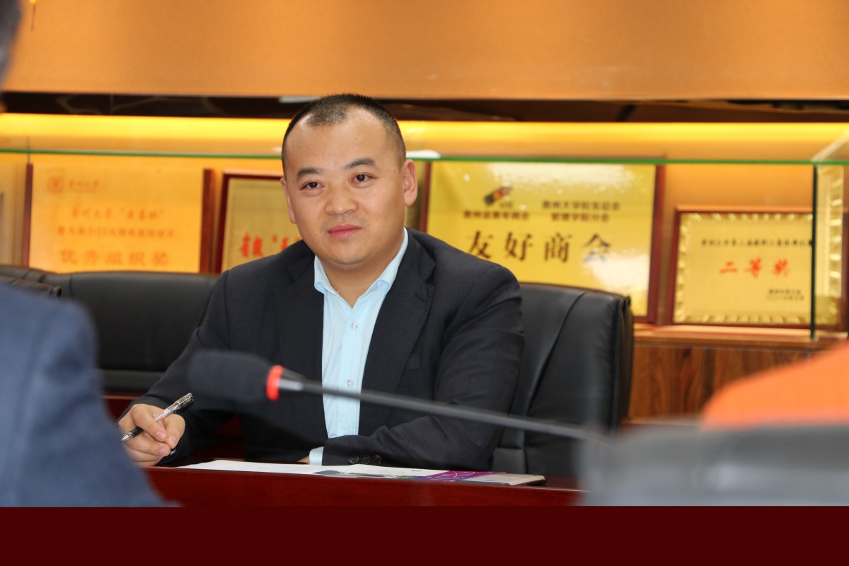 李烨院长致欢迎词,李烨院长代表管理学院对贵州法以正律师事务所张毅主任一行的到来表示热烈的欢迎。他说,乐动官方网站有最优质的校友资源,管理学院来自贫困家庭的学生占有相当的比例,学院里的寒门弟子要想走出贵州走向国外,离不开企业家校友们的支持。张毅主任作为EMBA第十四期的学员,在毕业后以校友的身份回馈母校,不仅加强了学校与学员之间的互哺,更是给企业家人才队伍打下了基础、开了个好头。他表示,乐动官方网站与贵州法以正律师事务所要加强合作和交流,为双方未来的持续健康发展而共同努力。