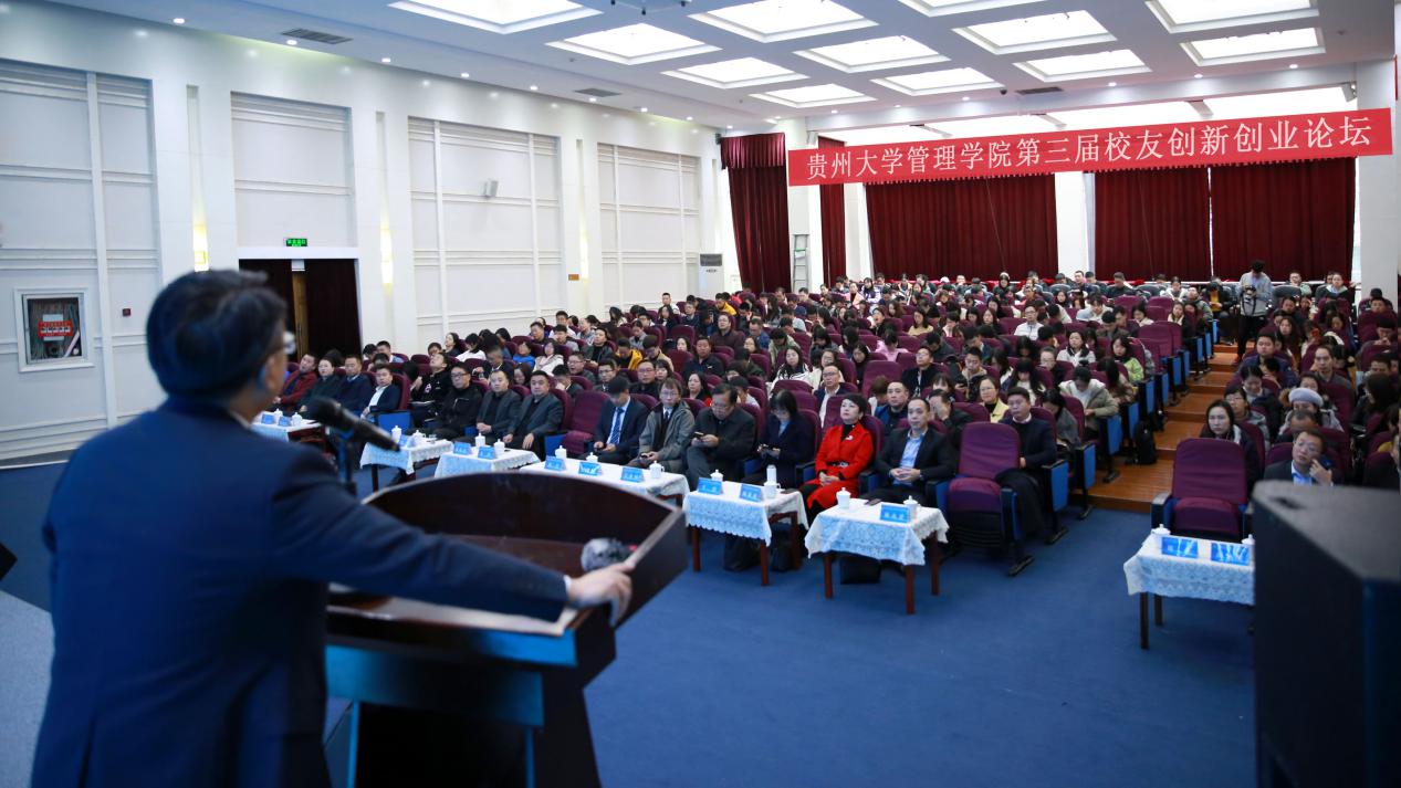 20191123日,由乐动官方网站主办,贵州大学校友总会管理学院分会、乐动官方网站创新创业教育中心承办的第三届校友企业家创新创业论坛在贵州大学北区行政楼举办。此次会议的主题为“数字赋能,创新未来”省内外专家学者、乐动官方网站领导、教师代表以及来自乐动官方网站EMBAMBAEDP、普研、本科生校友企业家代表和省市新闻媒体300余人参加了本次论坛。