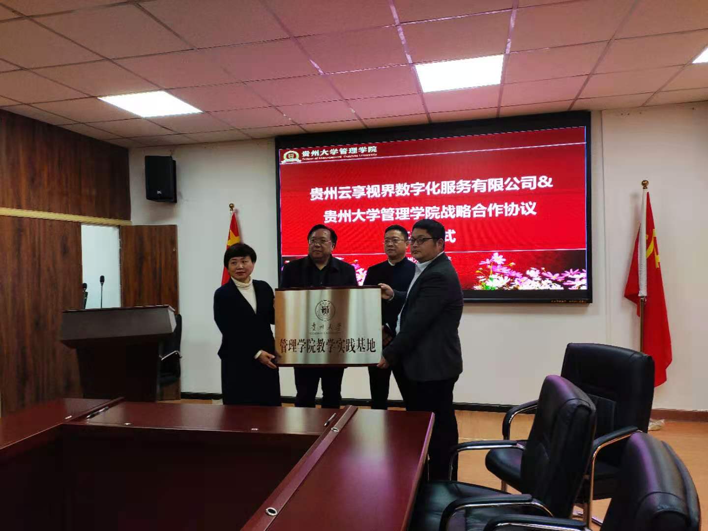 为丰富管理学院学生实践基地资源,促进产学研相结合,强化大学生实践能力, 2020年11月30日,管理学院与贵州云享视界数字化服务有限公司签订了校企合作框架协议及共建教学实践基地协议,同时举行了实践基地授牌仪式,乐动官方网站党委书记王秀峰、副院长宋山梅、营销电商系支部书记任卓异、对外合作办公室主任王云出席仪式,仪式由副院长宋山梅主持。