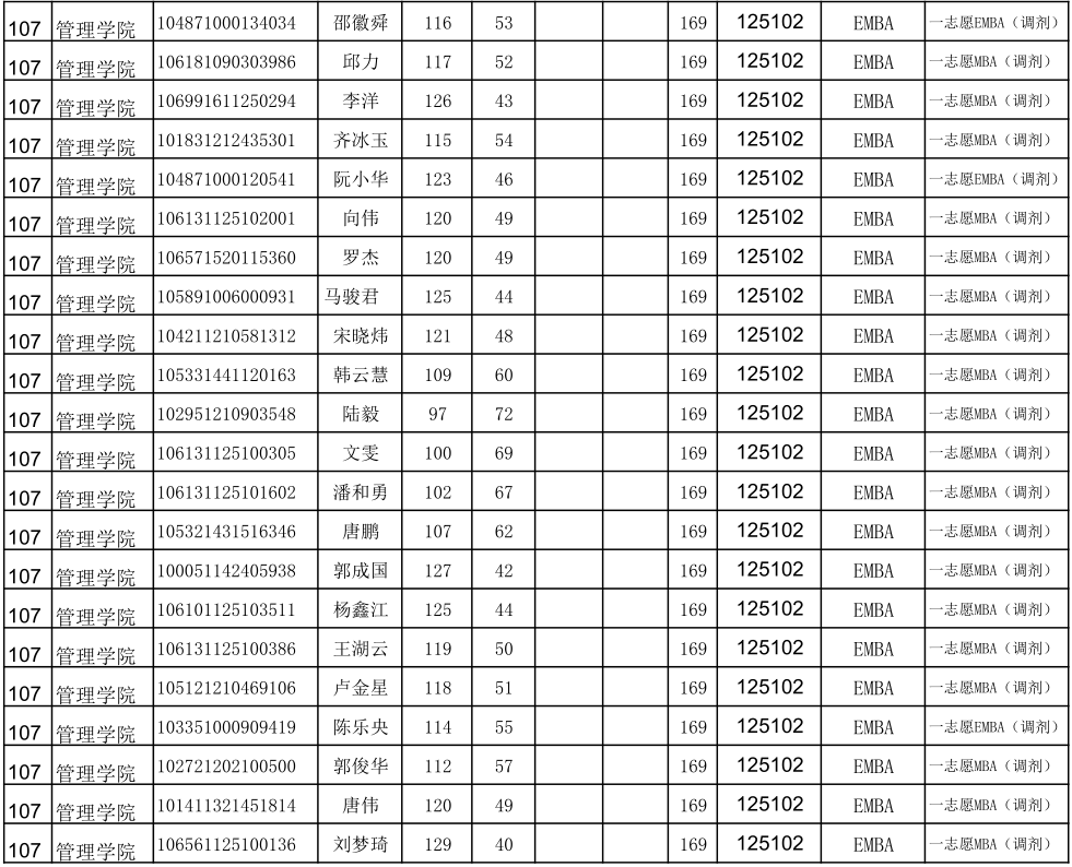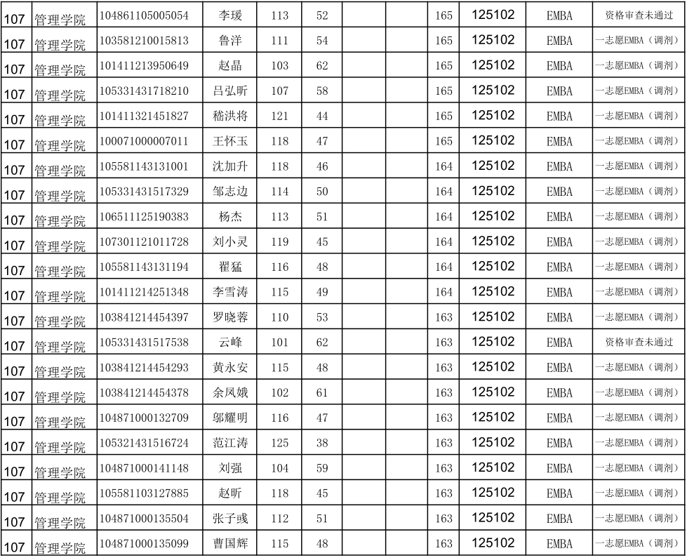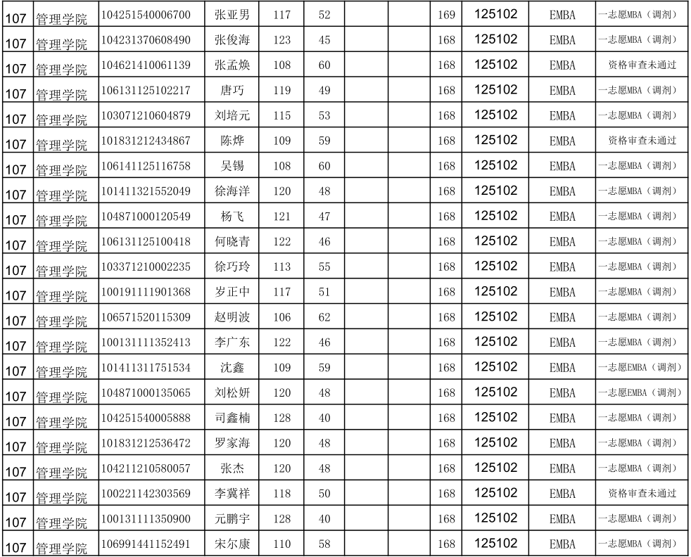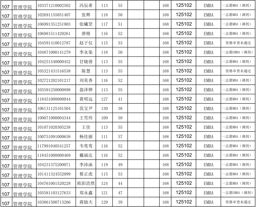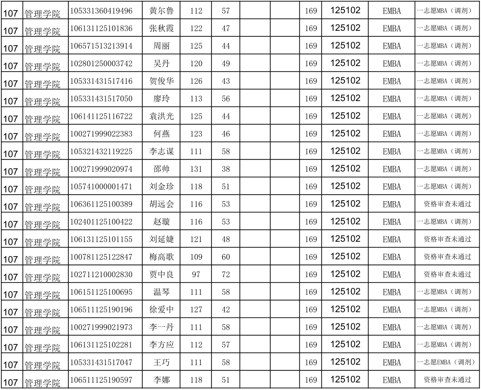 贵州大学2021年管理学院EMBA硕士研究生调剂复试名单