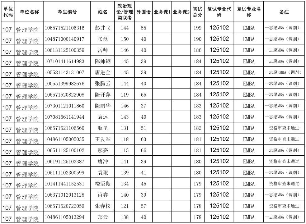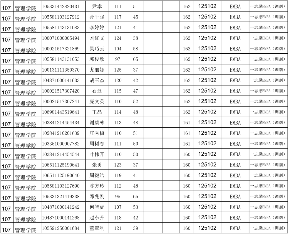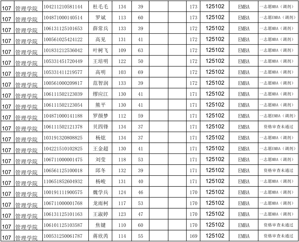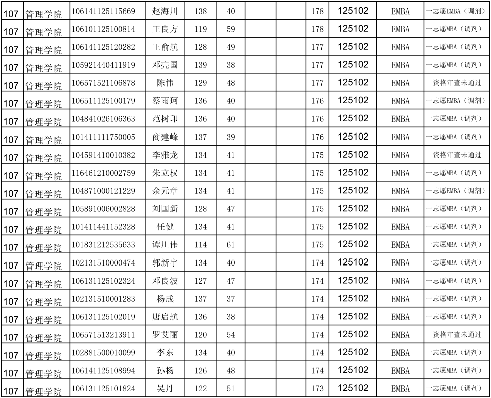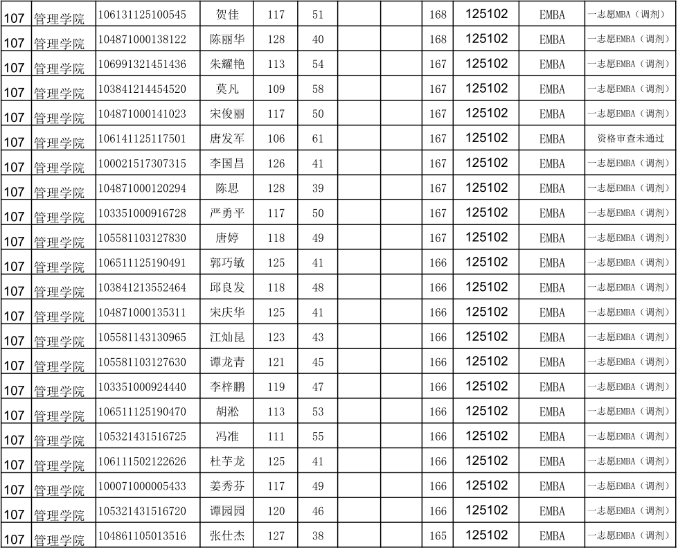 贵州大学2021年管理学院EMBA硕士研究生调剂复试名单
