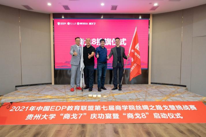最后,在全体成员的见证下,“商戈8”启动仪式由中国EDP联盟副主席、贵州大学EDP教育中心主任张勇为代表开启,“商戈7”队员何波作为“商戈8贵州大学战队主席接旗