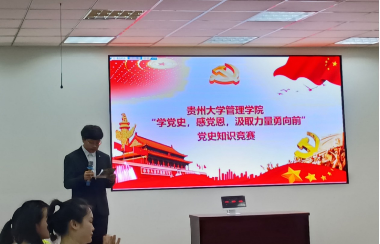 为喜迎建党百年,引导学院党员干部群众学党史、感党恩、强信念,从党史学习中汲取前进力量,6月9日下午,乐动官方网站“学党史、感党恩、汲取力量勇向前”党史知识竞赛决赛在东校区慎思楼MBA报告厅举行。贵州大学党委研究生工作部副部长张小彬(主持工作)、管理学院党委书记王秀峰、党委副书记洪影秋出席决赛,学院党政办公室、研究生科、学生科、MBA中心、各教工党支部代表及部分学生党员代表参加。本次竞赛由2018级市场营销系王正宏同学主持。
