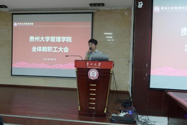 会上,院党委书记王秀峰传达了习近平总书记“七一”重要讲话精神,省委副书记、省长李炳军在贵州大学调研指示精神,以及贵州大学2021年秋季学期开学工作会暨高质量发展工作推进会议精神,并就上学期工作作简要总结、研究部署新学期相关工作。他指出,学习贯彻党的重要理论精神,是当前和今后时期的重大政治任务,我们要切实提高政治站位,做到在工作中自主学、自觉学、自愿学,将理论与实践相结合,高站位、高标准、高质量、高效率推进党史理论学习教育各项任务落到实处、细处、深处。他强调,贵州大学作为贵州一流高校,师生作为贵州区域乡村振兴工作先锋队队员,管理学院作为管理型人才培养基地,要充分扎根贵州大地、利用专业优势,在科教文卫和农林牧渔中主动建言献策,发挥示范引领作用,勇担贵州人民生活水平日益提高的助推器责任。他希望,全院教职工能再接再厉,在新学期继续将学科和产业深度融合,给产业镀金,将学科落实,把乡村振兴事业牢记在心,真正为学校“部省”合建和双一流建设添砖加瓦,为开创百姓富生态美多彩贵州新未来注入源源不断的动力。