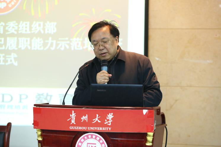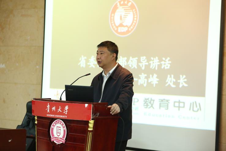 贵州大学副校长吴攀,贵州省委组织部党员教育中心教育处处长高峰,贵州大学党委组织部副部长张瑞良,贵州大学对外合作处副处长、贵州大学教育培训管理工作专班负责人付芳,乐动官方网站党委书记王秀峰,乐动官方网站院长李烨,乐动官方网站副院长宋山梅,贵州大学EDP教育中心主任张勇出席本次培训开班式。