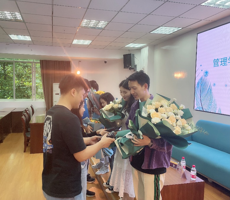 为发扬优秀毕业研究生榜样的精神,引导更多的同学向先进看齐,营造争先奋进的良好校园氛围。6月13日下午,“我与贵大的故事”——管理学院2022届硕士研究生毕业分享会在东校区慎思楼MBA报告厅举行。管理学院党委副书记洪影秋、管理学院研究生科科长徐兰、管理学院团委负责人研究生会秘书长车婧娴、管理学院研究生科辅导员龚潇潇、研究生科老师罗敬及全院研究生参加分享会。2019级管理科学与工程专业研究生魏俐华、田美慧,2019级企业管理专业研究生何欣、毛昊旻受邀作为优秀毕业研究生代表,向全院师生作分享汇报。