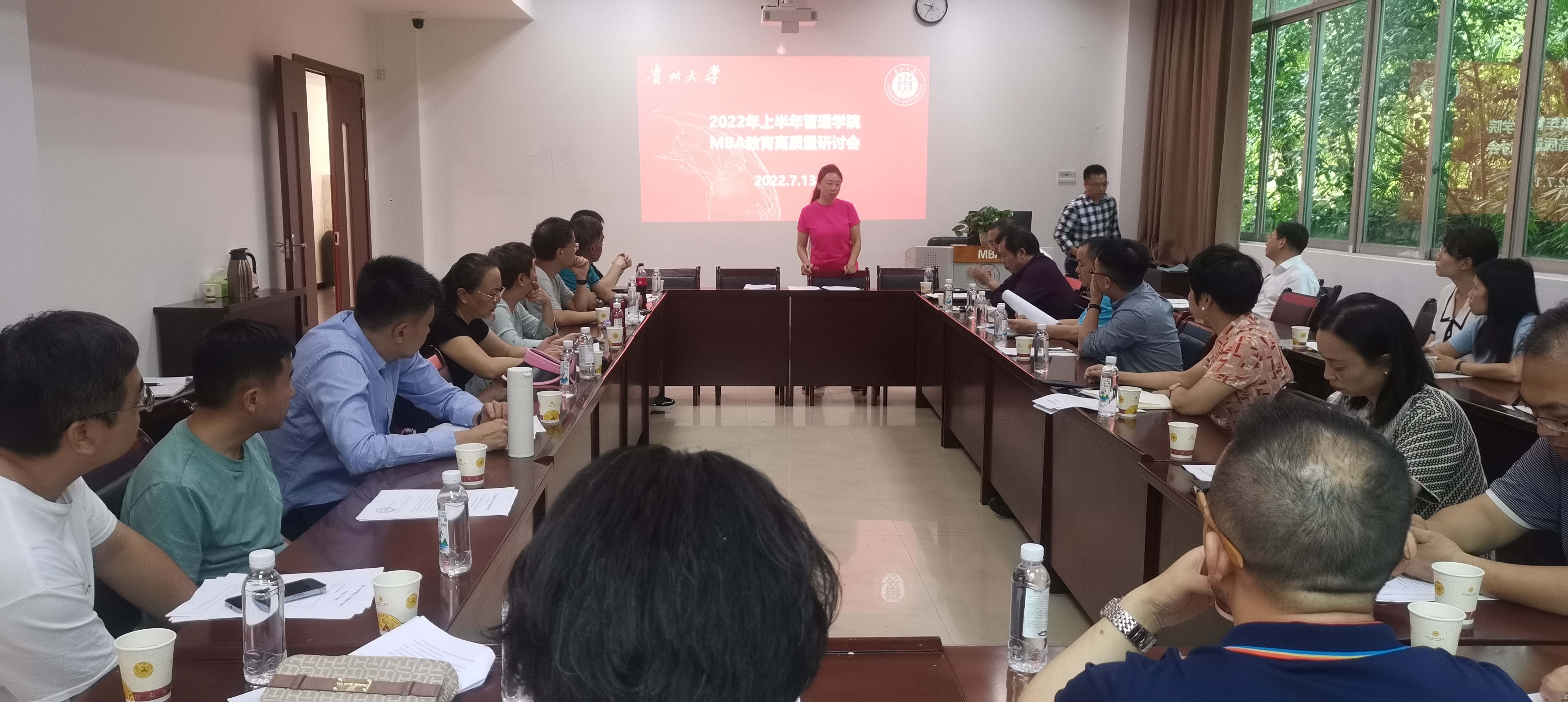 2022年7月13日上午,乐动官方网站MBA教育中心在慎思楼201教室举行了“2022年上半年管理学院MBA教育高质量研讨会”。贵州大学人民武装院副院长、管理学院副院长王婷教授,贵州大学党委正处级组织员周莉莉教授,MBA中心主任项凯标教授,MBA中心任课老师、论文指导老师以及中心工作人员共40余人参加了此次研讨会。会议由MBA中心副主任何跃勇老师主持。