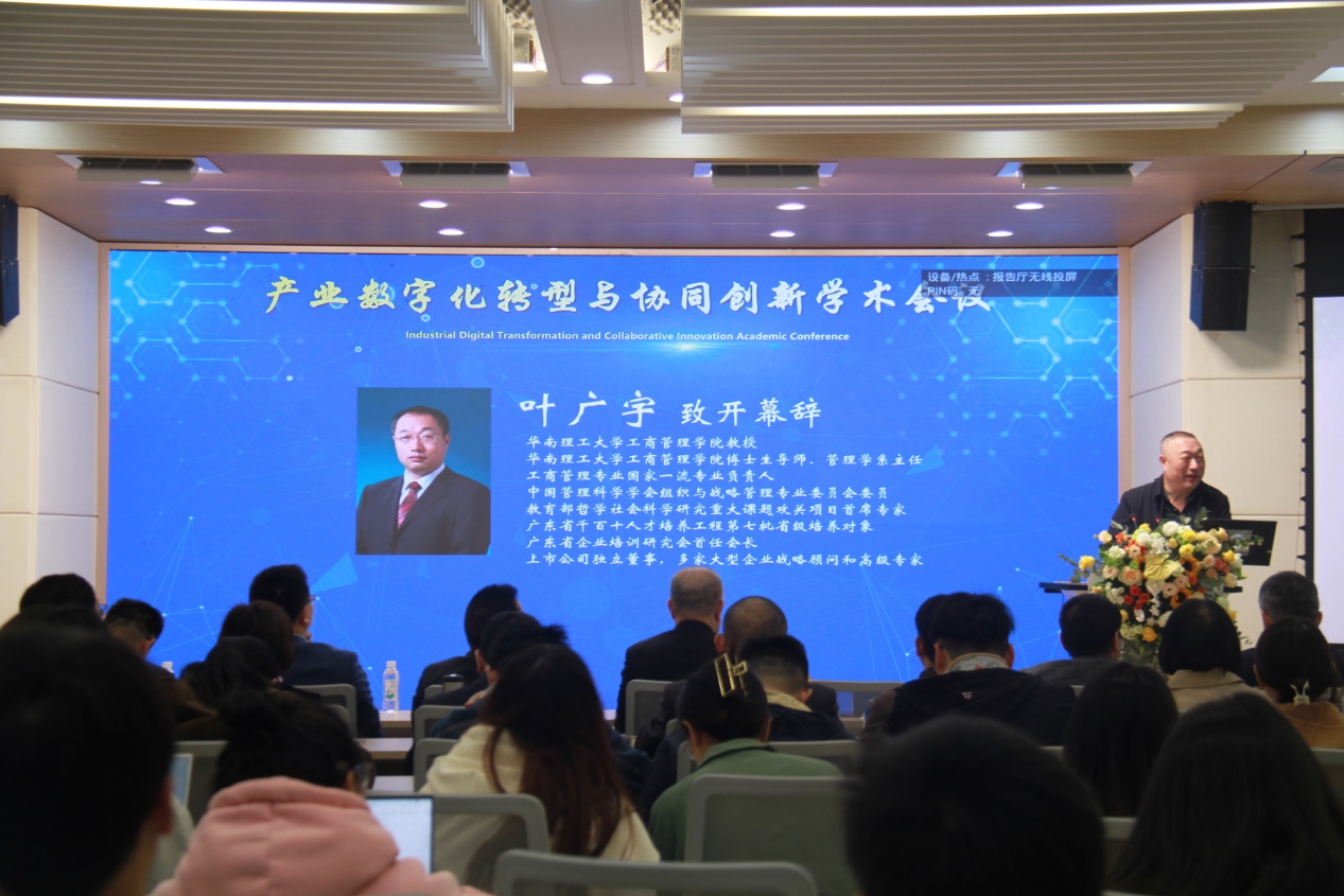 李烨院长致欢迎词,简要介绍了本次会议的背景,认为数字经济正逐渐成为高质量发展的新引擎,传统产业数字化转型是数字经济发展壮大的重要支撑,为加快推进中国产业数字化转型,助力数字经济发展壮大,实现高质量发展,此次学术会议也因此应运而生。