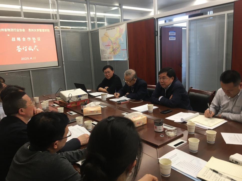 2023年4月11日下午,贵州省物流行业协会-乐动官方网站签约仪式在贵州省物流行业协会会议室举行。贵州省物流行业协会会长任仁、贵州省物流行业协会原会长李大忠、贵州省物流行业协会常务副会长罗亨文,贵州大学发展规划处处长冉光圭、管理学院院长李烨、副院长李本光、王婷、院党委副书记邓琳出席签约仪式。贵州省物流行业协会和我院相关部门负责人参加。贵州省物流行业协会副会长兼秘书长高波主持此次仪式。