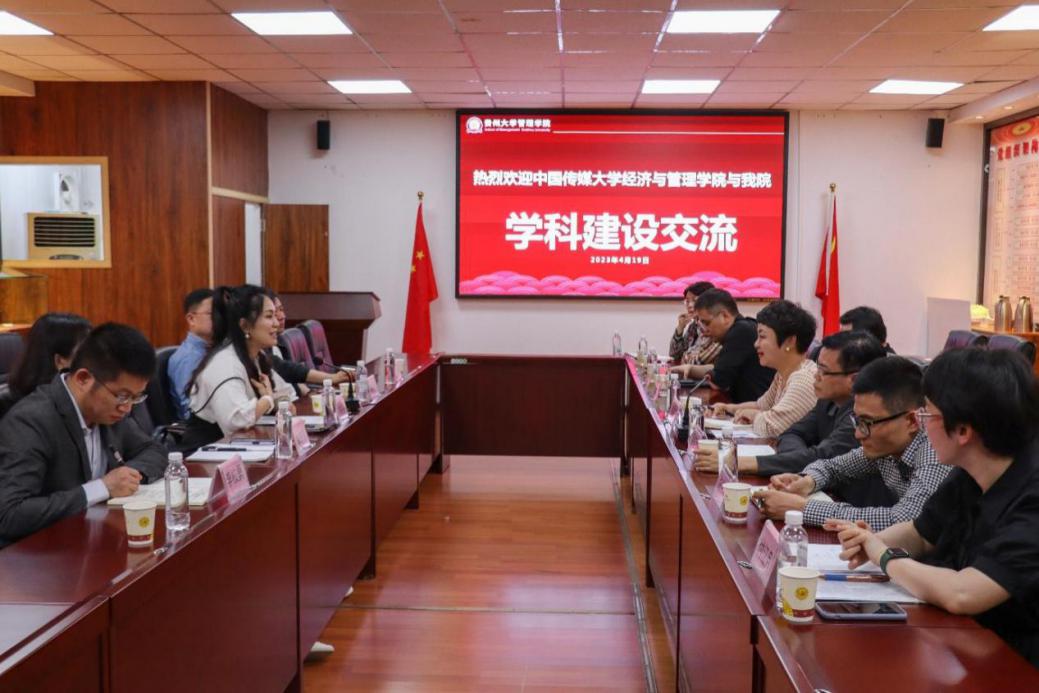 2023419日下午,中国传媒大学经济与管理学院党委书记王晓丽等一行6人到我院开展党建、学科建设工作交流座谈会。贵州大学正处级组织员,管理学院党委副书记(主持党委工作)周莉莉、副院长(正处级)李本光,以及学院相关系、部门负责人参加会议。