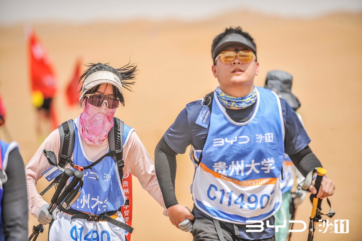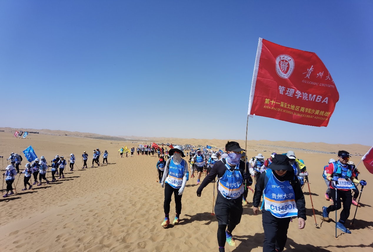 4月30日—5月2日,贵州大学MBA 队员们经历着风沙、烈日、雨淋等恶劣天气的考验,汗水夹杂着风沙从他们脸庞滴落,沉重的喘息伴随着不肯停息的脚步,前行的每一步都是对自我体能和毅力的挑战,在比赛中,他们每天都有出现不适和不同程度的受伤,脚底起泡、腿抽筋,甚至还有人因体力透支而发烧,但他们终没放弃,而是不断超越自我、相互鼓励、精诚合作,坚持走完全程,最终顺利完赛。