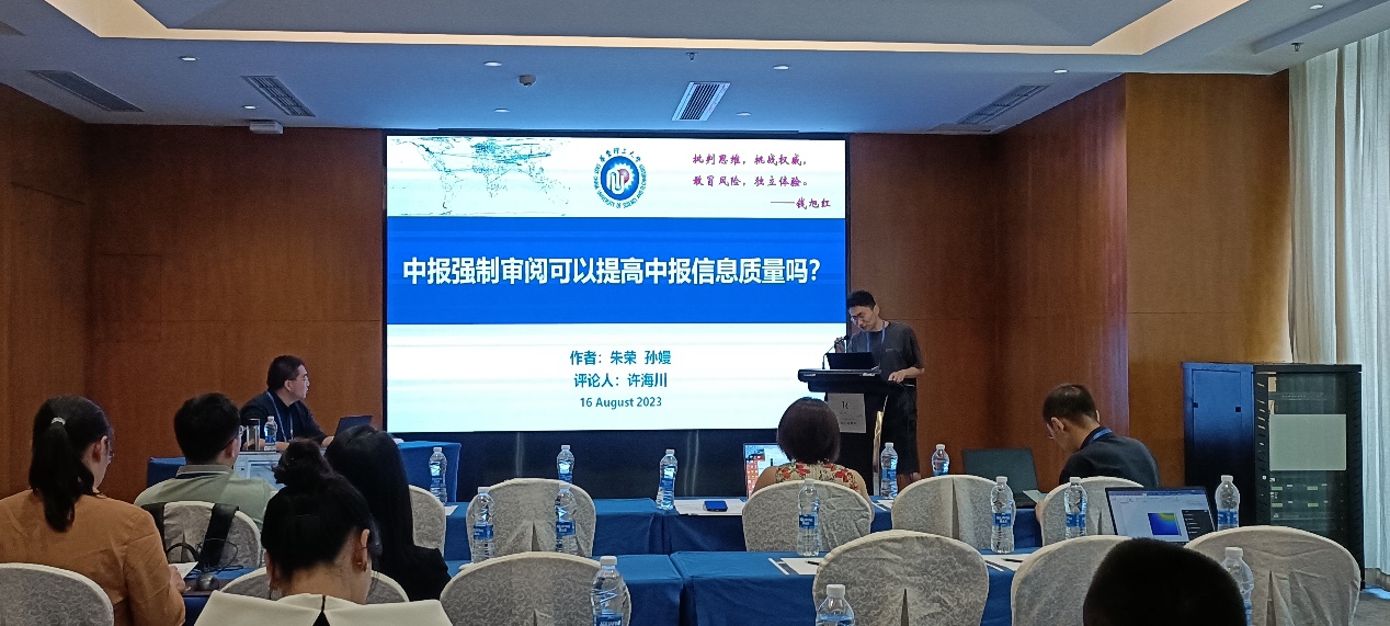 分组报告阶段,朱荣以“中报强制审阅可以提高中报信息质量吗”,邢凯以“高管学术经历与企业创新:“得偿所愿”抑或“事与愿违””,部慧以“股票和债券市场整合:企业财务困境和债券违约预测的视角”,张晓美以“股权结构、企业业绩与新三板企业自愿退市”,梁亮以“环境不确定性、管理者能力与股价崩盘风险”,许海川以“股票截面收益可以由稀疏特征因子解释吗?——来自中国股市的证据”为题做了报告,总体而言,这些论文在大数据与公司金融领域的研究方面做出了贡献,对该领域的发展具有重要的意义。