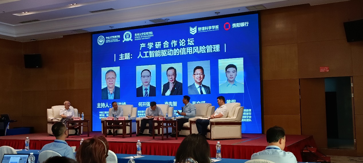 在随后的产学研合作论坛:人工智能驱动的信用风险管理的讨论中,主持人中国工程院院士柴洪峰教授和袁先智、韦立坚、何开强、黄煜四位嘉宾分别就当下的大数据与人工智能的热点话题,对银行的信用风险管理提出了自己的看法。他们谈到,在近几年,贵阳银行在大数据与人工智能的驱动方向进行了实践,并取得了一定的成果。四位专家纷纷强调,创新成就未来。在当下的高质量发展的新时代,科技创新尤为重要,信息已经成为全社会经济发展的最主要驱动力。
