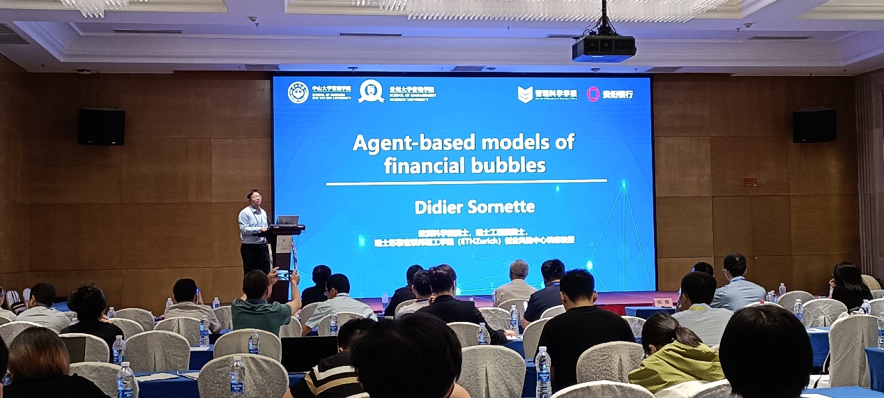 紧接着,欧洲科学院院士、瑞士联邦理工学院Didier Sornette教授做主题报告(线上),报告围绕金融泡沫的形成机制,探讨了市场干预对于金融泡沫和崩溃的有效性。基于主体模型,深入分析非正态相互作用,并运用先进的数据分析方法,提出了保护金融市场稳定性的干预方法。这些最新的研究成果不仅为我们理解金融泡沫、揭示其形成机制提供了途径,还对我们制定有效的市场干预策略具有重要的启发作用。