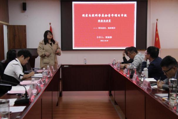 20231010日上午10时,学院科研工作推进会暨2024年国家基金项目申报启动会在陈列室召开。学院党政领导出席会议,各相关部门工作负责人、2024国家基金项目拟申报老师参加会议,特邀学校人文社会处副处长周乐欣教授参加,会议由学院副院长(正处级)李本光教授主持。