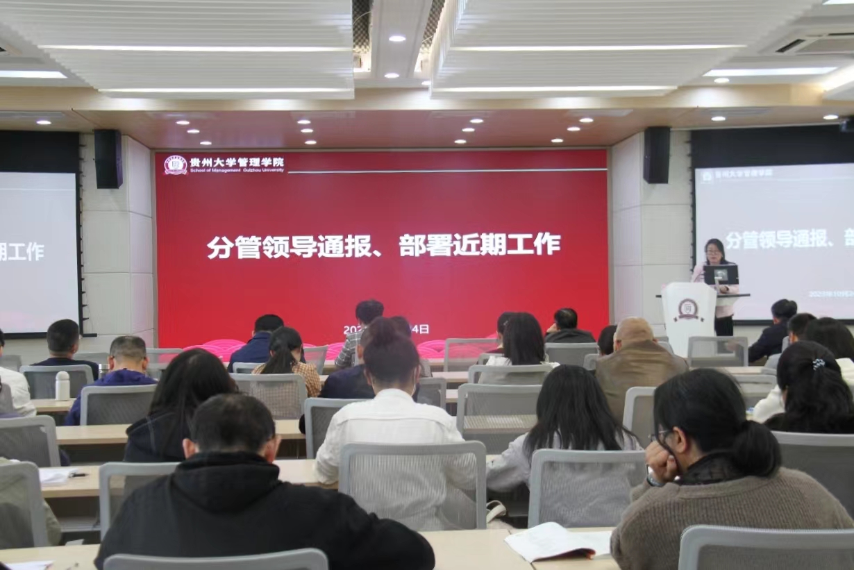 会议第一项议程是由贵州大学党委正处级组织员、管理学院党委副书记(主持党委工作)周莉莉教授首先传达了今年10月7日至10月8日在北京召开的全国宣传思想工作会议精神,同时详细介绍了10月18日召开的全省高等教育高质量发展大会的学习内容,特别引用了省委书记徐麟在会上的讲话,强调要充分考虑我省人口结构变化和高质量发展需求,深入推进高校布局调整,集中力量做强贵州大学,推动本科高校突出优势、错位发展,推动高职院校产教融合、扩容提质,加快形成支撑现代化建设的高等教育新格局。