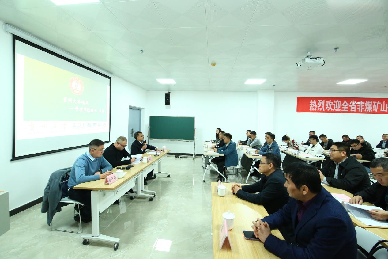 11月27日上午,由贵州省工业和信息化厅和贵州大学主办,乐动官方网站承办的全省非煤矿山行业管理培训班开班典礼在乐动官方网站顺利举行。来自我省各市(州)、县(市、区)各级工业和信息化主管部门非煤矿山行业管理的负责人员共87人开始接受为期5天的培训。这是我省扎实推动非煤矿山行业管理工作高质量发展的有效举措之一。