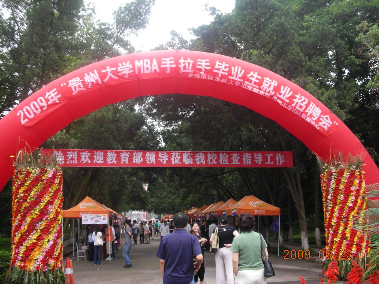 3. 2009年贵州大学MBA中心/MBA联合会联合校招生就业处面向全校学生举行了“贵州大学MBA手拉手毕业生就业招聘会”,据统计,在此次招聘会上,一共有80家企业进场,提供了涉及房地产、科技、旅游、证券、装修、广告、保险等行业的800余个岗位,2000余名本科应届毕业生和硕士研究生到场参加了这次招聘。