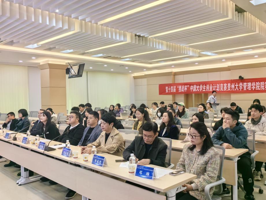 贵州大学党委正处级组织员、管理学院党委副书记(主持党委工作)周莉莉教授宣布比赛正式开始。随后48支参赛队伍依次登场,以饱满的热情向评委们展示了自己的参赛项目,进行了精彩的展演和答辩。这些项目涵盖了多个领域,同学们充分发挥专业特长,围绕各类社会问题提出创新解决方案,充分展现了管理学院学生们的创新思维和创新实践能力。各团队的表现精彩纷呈,评委老师们对各个项目进行了认真点评,并提出了宝贵的建议,让参赛同学受益匪浅。现场观众们也沉浸在这场思维的碰撞与创意的盛宴中。