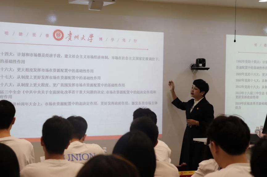 2024年4月27日上午,乐动官方网站分党校第四十期入党积极分子培训班专题党课——习近平新时代中国特色社会主义思想,在管理学院致远楼402教室举行。贵州大学党委正处级组织员、管理学院党委副书记(主持党委工作)周莉莉担任主讲人。