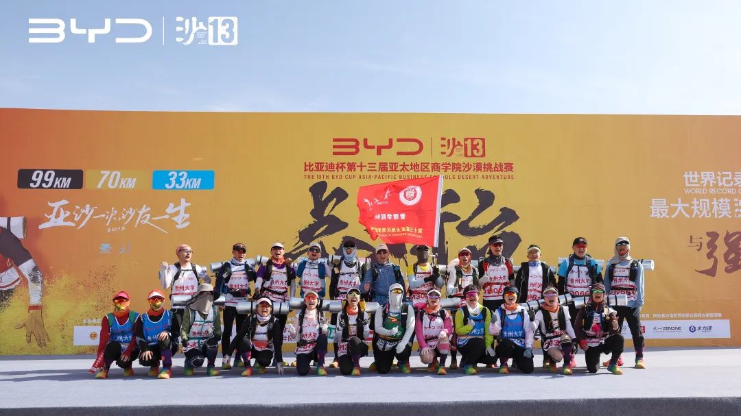 2024年5月1日至5月4日,比亚迪杯第十三届亚太地区商学院沙漠挑战赛(简称“沙13”)在内蒙古阿拉善盟腾格里沙漠强势举行,这场为期四天的赛事,汇聚了来自全国各地的112所院校,超4000名选手,共同挑战自我,为荣誉而战。乐动官方网站MBA沙13战队由管理学院MBA中心办公室主任芮丽华老师带队,MBA2104班刘紫淳、MBA2205班苏冠维、MBA2206班李环荣、MBA2303班陈梦迪、MBA2307班罗悦、曾婧、钟丽红,MBA05级校友周晓军、MBA15级校友赖立、MBA17级校友秦振华、姜曼、MBA19级校友童振扬、郝红卜、MBA20级校友周自行以及亲友团共24名队员共赴腾格里沙漠,每一名队员都抱着“不破楼兰终不还”的决心和信念远赴这场团战。