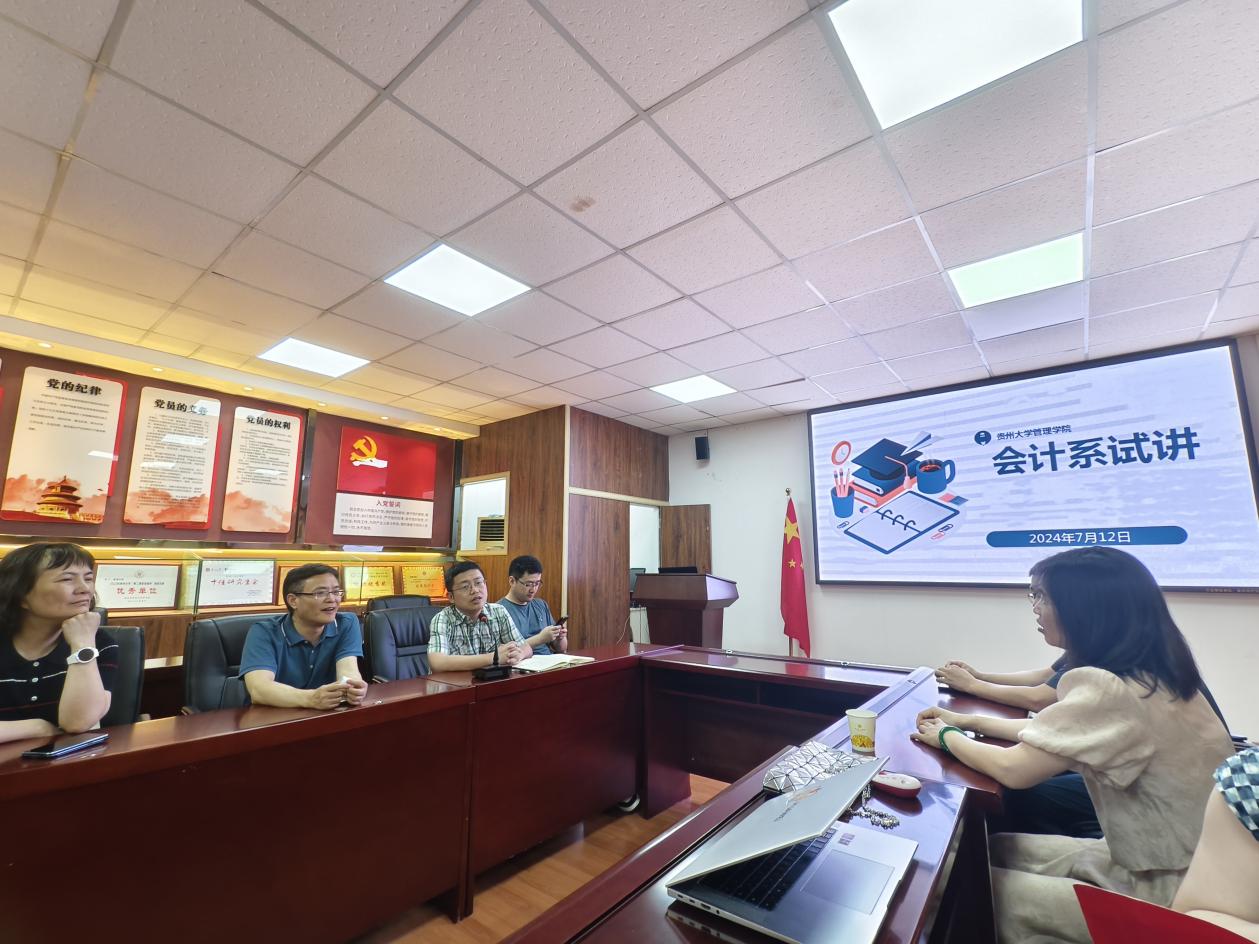 2024年7月12日,会计教研室组织全体教师召开了集体备课和试讲教研活动,旨在迎接教学评估,提高教学质量,提升教学效果。