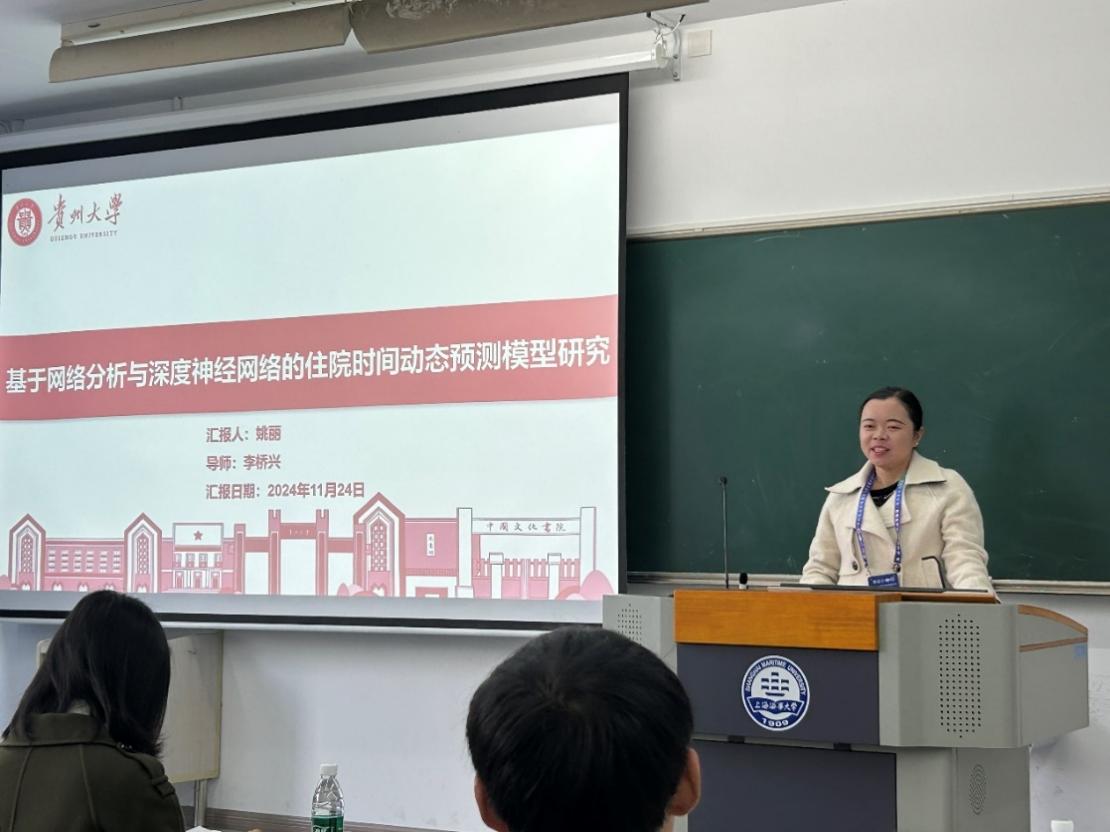 在本次年会的分论坛“优选学与优化管理”中,实验室博士生成员姚丽汇报了论文《基于网络分析与深度神经网络的住院时间动态预测模型研究》。该研究针对医疗资源优化管理问题,提出了一种结合网络分析和深度学习的创新方法,并通过实证验证其有效性,受到与会专家的关注并对该论文提出了修改建议。