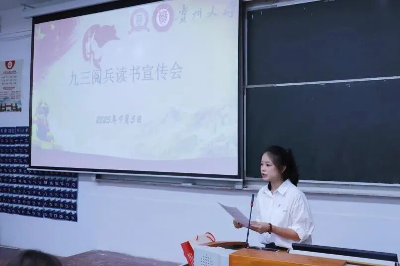 在阅兵仪式回顾结束后,潘飞扬同学进行了深入地文字解读。她提到,九三阅兵不仅是对中国人民抗日战争暨世界反法西斯战争胜利80周年的纪念,更是向世界展示中国捍卫和平的决心。这一阅兵仪式背后,承载着无数先烈们为国家独立、民族解放而英勇献身的历史,彰显了中华民族百折不挠、坚韧不拔的伟大抗战精神,激励着当代青年为实现中华民族伟大复兴而努力奋斗。