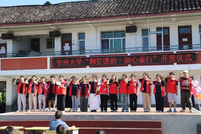 七月流火,蝉鸣织就盛夏的序曲。乐动官方网站青年志愿者协会实践队踏着热浪奔赴黔东南,于7月15日在镇远县报京乡中心小学启幕“侗笙遗韵·润心童行”夏令营。一场兼具仪式感与烟火气的开营礼,恰似侗家芦笙初吹响的第一个音符,为这个夏天的成长故事定下了温暖基调。实践队秉持“润心童行”理念,在欢声笑语中搭建文化传承与童心交融的桥梁,用志愿热忱诠释青春担当。