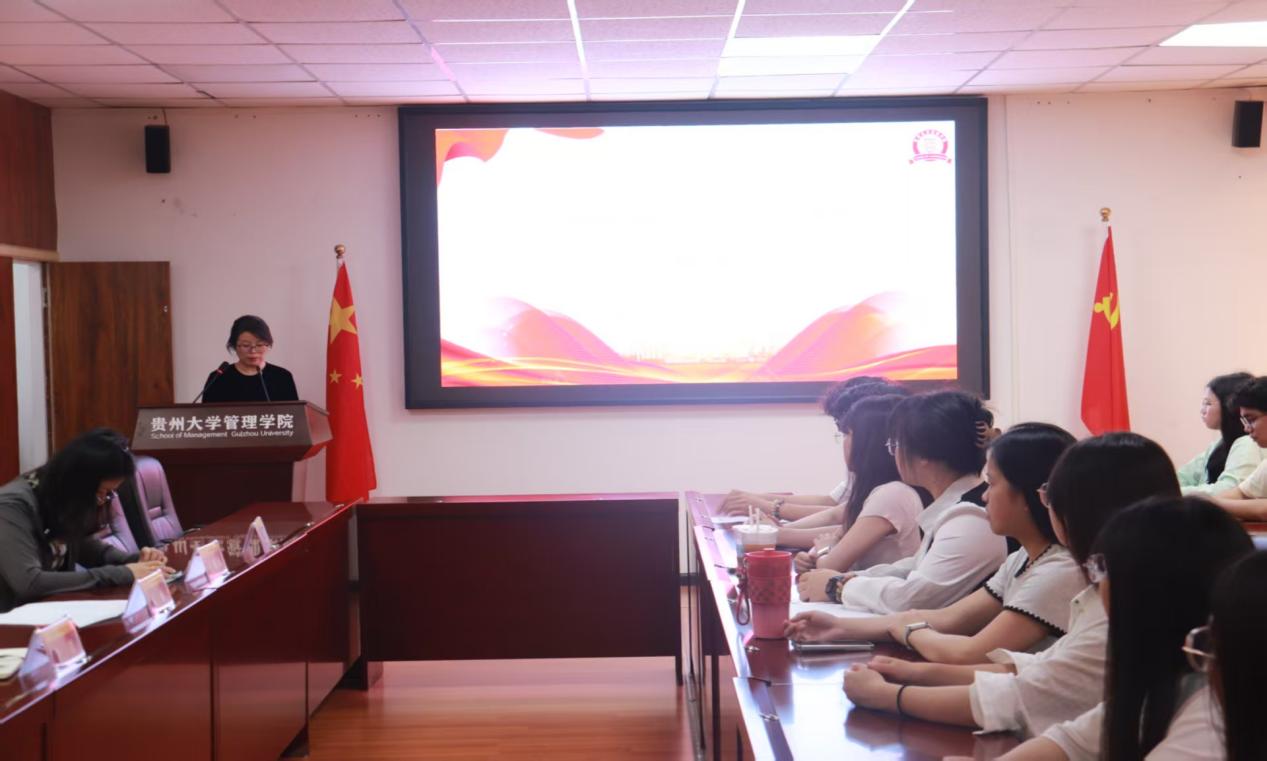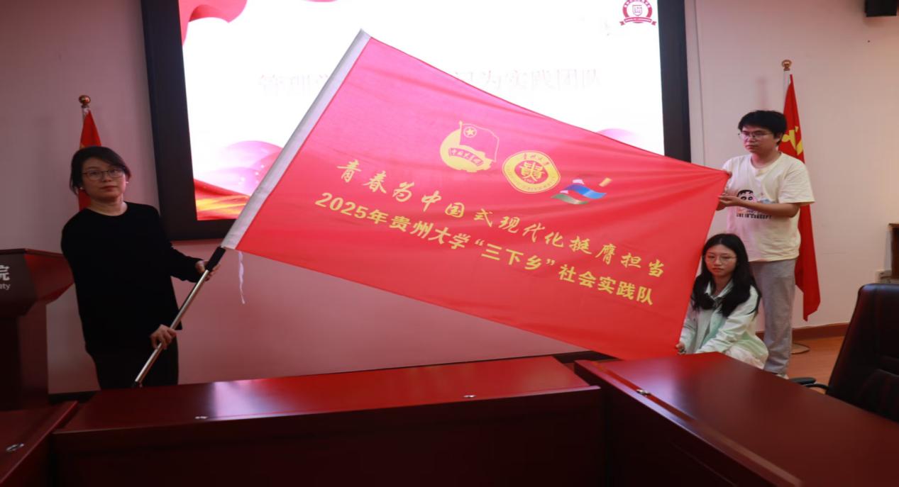 会议第三项议程,管理学院党委副书记邓琳老师为实践团队代表授旗。鲜红的旗帜接过的瞬间,承载着学院期许与队员使命,象征着管院学子即将开启壮丽的征程。现场掌声雷动,青春出征的信念愈发坚定。