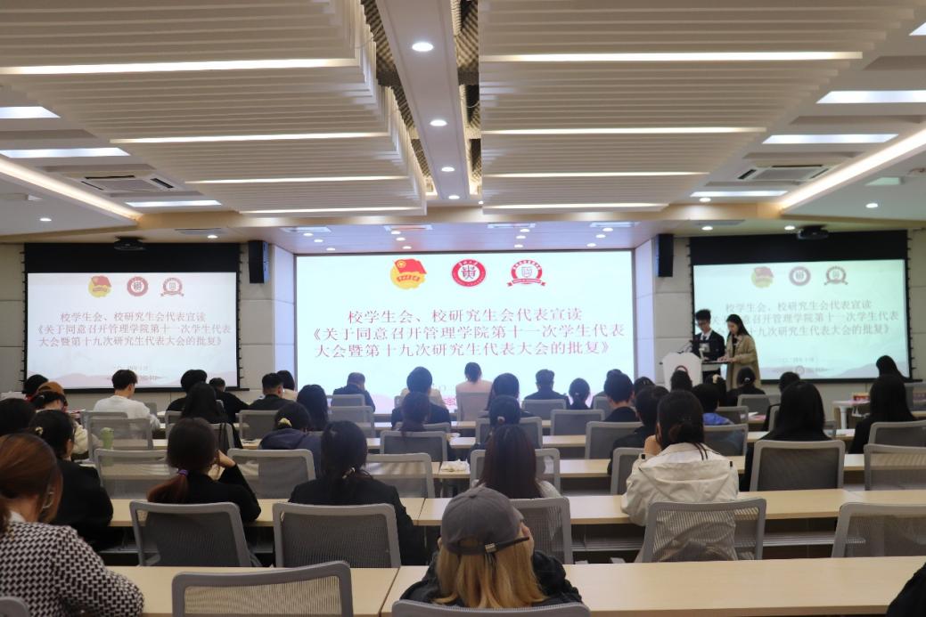 大会第三项,校学生会代表郭颖、研究生会代表张立群宣读《关于乐动官方网站第十一次学生代表大会暨第十九次研究生代表大会批复》。