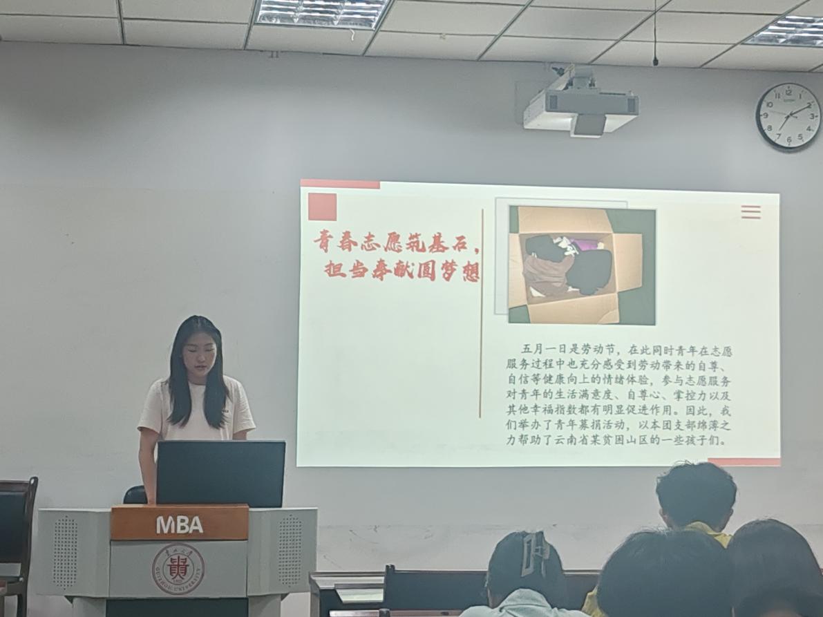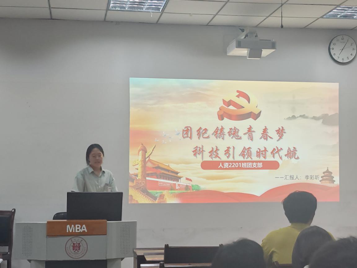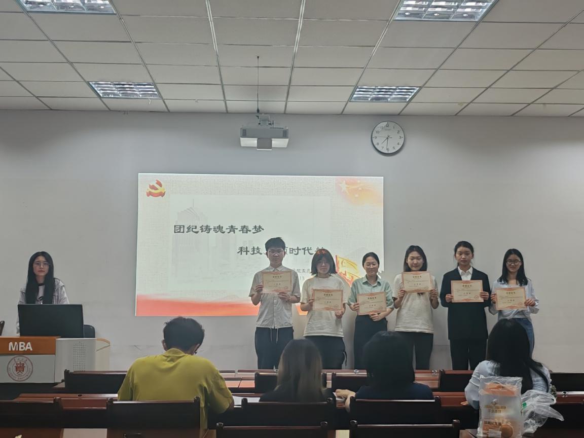 管理学院于2025年5月13日晚7点在慎思楼MBA教育中心203报告厅开展“团纪铸魂青春梦,科技引领时代航”主题团日活动评比。本次团日活动评委由主席团成员邓雨容、孙雲天、刘妍及院团委副书记(学生)苏孟岚担任。