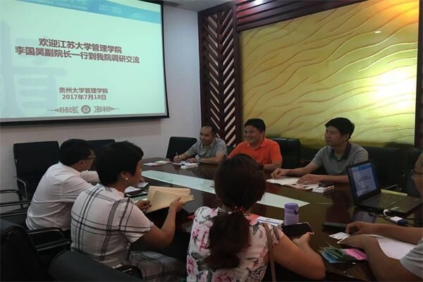 2017年7月17日上午9:00,江苏大学管理学院李国昊副院长一行访问我院。我院院长李烨教授、副院长周莉莉教授、会计系主任李会萍副教授、MBA教育中心主任刘宁副教授、MBA中心副主任何跃勇老师及工商管理系李艳华老师参加了座谈。