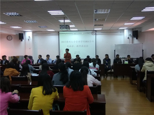 最后周莉莉副院长指出导师必须严把论文质量关,论文的题目一定要紧紧围绕工商管理专业开展。老师需规范自身的教学方式方法,加强责任心,认真备课,遵循中心排课方式,避免让学生的课程开天窗。注重对学生的学习能力、思维能力、自主能力的培养。让学生紧跟导师的研究脚步又要发挥自身主观能动性,师生之间要搞好沟通,希望我们贵州大学MBA项目在大家的共同努力下越来越好。